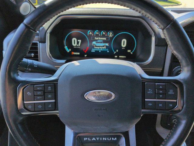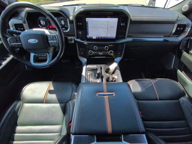This 2022 Ford F-150 Platinum in Star White Metallic Tri-Coat features: 4D SuperCrew, 3.5L V6 EcoBoost, 10-Speed Automatic, 4WD, **LOCAL TRADE**, 12" LCD Productivity Touchscreen, 20" Polished Aluminum Wheels, 360 Degree Camera, 360-Degree Camera, 4-Wheel Disc Brakes, 4G WiFi Hotspot Telematics, 4x4 FX4 Off-Road Bodyside Decal, 8 Speakers, ABS brakes, Active Park Assist 2.0, Adaptive Steering, Adaptive Steering, Adjustable pedals, AM/FM radio: SiriusXM with 360L, Auto LED Headlights, Auto tilt-away steering wheel, Auto-dimming Rear-View mirror, Automatic temperature control, Backup Camera, Bed Utility Package, Blind Spot Monitoring, BLIS w/ Cross Traffic Alert, BlueCruise, BlueCruise, Bluetooth w/ Audio Streaming, BoxLink, Class IV Trailer Hitch Receiver, Compass, Electronic Locking w/3.31 Axle Ratio, Emergency communication system: SYNC 4 911 Assist, Equipment Group 701A High, Extended Range 36 Gallon Fuel Tank, Ford Co-Pilot360 Active 2.0, Front Center Armrest, Front dual zone A/C, Front wheel independent suspension, FX4 Off-Road Package, Garage door transmitter, Heated door mirrors, Heated front seats, Heated rear seats, Heated steering wheel, Hill Descent Control, Illuminated entry, Integrated Trailer Brake Controller, Interior Work Surface, Lane Keeping System, Leather Seats, LED Box Lighting, LED Sideview Mirror Spotlights, Low tire pressure warning, Max Trailer Tow Package, Memory seat, Monotube Rear Shocks, Off Road Package, Off-Road Tuned Front Shock Absorbers, Outside temperature display, Overhead console, Panoramic Sunroof/Moonroof, Parking Sensors, Pedal memory, Post Collision Braking, Power door mirrors, Power Mirror Package, Power Package, Power passenger seat, Power Running Boards, Power Sliding Rear Window, Power Tailgate, Premium Audio Package, Premium Sound Package, Pro Power Onboard - 2KW, Pro Trailer Backup Assist, Radio data system, Radio: B&O Unleashed Sound System by Bang & Olufsen, Rain sensing wipers, Rear seat center armrest, Rear step bumper, Remote keyless entry, Reverse Brake Assist, Reverse Sensing, Rock Crawl Mode, Skid Plate Package, Speed-sensing steering, Split folding rear seat, Steering wheel memory, Steering wheel mounted audio controls, Tailgate Step w/Tailgate Work Surface, Telescoping steering wheel, Tilt steering wheel, Tow Package, Tow Technology Package, Traction control, Trailer Package, Tray Style Floor Liner, Trip computer, Turn signal indicator mirrors, Twin Panel Moonroof, Unique Multi-Contour Leather Bucket Seats, Ventilated front seats, Wireless Charging Pad.