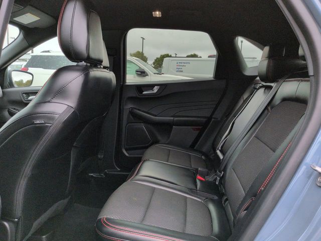 This 2023 Ford Escape ST-Line Select in Vapor Blue features: 4D Sport Utility, EcoBoost 2.0L I4 GTDi DOHC Turbocharged VCT, 8-Speed Automatic, AWD, 13.2" LCD Centerstack Touchscreen, 4-Wheel Disc Brakes, ABS brakes, Adaptive Cruise Control, AM/FM radio: SiriusXM, Auto High-beam Headlights, Automatic temperature control, Backup Camera, Blind Spot Monitoring, BLIS w/ Cross Traffic Alert, Bluetooth w/ Audio Streaming, Brake assist, Compass, Connected Built-In Navigation, Delay-off headlights, Electronic Stability Control, Emergency communication system: SYNC 4 911 Assist, Equipment Group 401A, Evasive Steering Assist, Exterior Parking Camera Rear, Ford Co-Pilot360 Assist+, FordPass Connect, Front Center Armrest, Front dual zone A/C, Front fog lights, Fully automatic headlights, Heated door mirrors, Heated front seats, Heated steering wheel, Heated Vinyl/Cloth Front Sport Contour Bucket Seats, Illuminated entry, Intelligent Adaptive Cruise Control w/Stop-and-Go, Lane Keeping System, LED Foglights, Low tire pressure warning, Neutral Towing Capability, Outside temperature display, Overhead console, Pedestrian Alert Sounder, Power driver seat, Power Liftgate, Power Mirror Package, Power Package, Power steering, Power windows, Push Button Start, Radio data system, Rear Parking Sensor, Rear seat center armrest, Rear window wiper, Rear-View Camera, Remote keyless entry, Remote Start, Speed Sign Recognition, Speed-sensing steering, Speed-Sensitive Wipers, Split folding rear seat, Spoiler, Sport Package, Sport steering wheel, Steering wheel mounted audio controls, Suspension Package, SYNC 4 w/Enhanced Voice Recognition, Tech Pack #1, Technology Package, Telescoping steering wheel, Tilt steering wheel, Traction control, Trip computer, Wheels: 18" Rock Metallic Painted Aluminum.