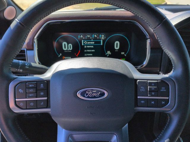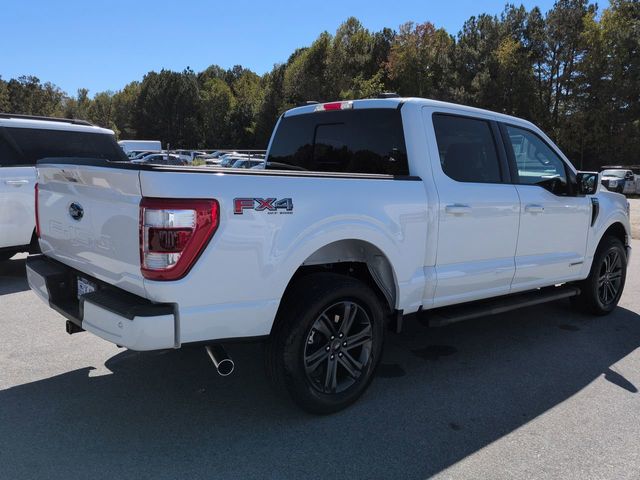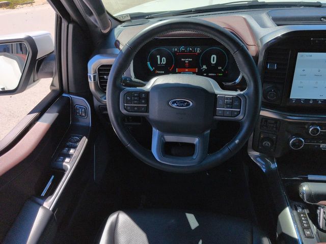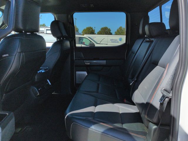 This 2023 Ford F-150 Lariat in Star White Metallic Tri-Coat features: 4D SuperCrew, 3.5L PowerBoost Full-Hybrid V6, 10-Speed Automatic, 4WD, 12" LCD Productivity Touchscreen, 2nd Row Heated Seats, 4-Wheel Disc Brakes, 4G WiFi Hotspot Telematics, 4x4 FX4 Off-Road Bodyside Decal, 8 Speakers, ABS brakes, Accent-Color Angular Step Bars, Adjustable pedals, AM/FM radio: SiriusXM with 360L, Auto Emergency Braking, Auto High-beam Headlights, Auto Start-Stop Removal (DISC), Auto-dimming Rear-View mirror, Automatic temperature control, Backup Camera, Bed Utility Package, Blind Spot Monitoring, BLIS w/ Cross Traffic Alert, Bluetooth w/ Audio Streaming, Body-Color Front & Rear Bumpers, Box Side Decals, BoxLink, Brake assist, Chrome Single-Tip Exhaust, Class IV Trailer Hitch Receiver, Connected Built-In Navigation, Dark 2-Bar & 1 Minor Bar Style Grille, Delay-off headlights, Electronic Locking w/3.73 Axle Ratio, Electronic Stability Control, Emergency communication system: SYNC 4 911 Assist, Equipment Group 502A High, Evasive Steering Assist, Extended Range 36 Gallon Fuel Tank, Exterior Parking Camera Rear, Ford Co-Pilot360 Assist 2.0, Front Center Armrest, Front dual zone A/C, Front fog lights, Front wheel independent suspension, Fully automatic headlights, FX4 Off-Road Package, Garage door transmitter, Heated door mirrors, Heated front seats, Heated steering wheel, Hill Descent Control, Illuminated entry, Inclination/Intrusion Sensor Removal, Integrated Trailer Brake Controller, Intelligent Adaptive Cruise Control w/Stop & Go, Interior Work Surface, Intersection Assist, Lane Keeping System, Lariat Package, Lariat Sport Appearance Package, Leather Seats, Leather-Trimmed Bucket Seats, LED Box Lighting, LED Foglights, LED Projector w/Dynamic Bending Headlamps, LED Sideview Mirror Spotlights, Low tire pressure warning, Max Trailer Tow Package, Memory Package, Memory seat, Monotube Rear Shocks, Off Road Package, Off-Road Tuned Front Shock Absorbers, Outside temperature display, Overhead console, Panic alarm, Parking Sensors, Pedal memory, Power door mirrors, Power Mirror Package, Power Package, Power passenger seat, Power Tailgate, Power Tilt/Telescoping Steering Column w/Memory, Pre Collision Assist w/ AEB, Premium Audio Package, Premium Sound Package, Pro Power Onboard - 7.2KW, Pro Trailer Backup Assist & Pro Trailer Hitch Assist, Radio data system, Radio: B&O Unleashed Sound System by Bang & Olufsen, Rain-Sensing Wipers, Rear seat center armrest, Rear step bumper, Remote keyless entry, Reverse Brake Assist, Reverse Sensing, Rock Crawl Mode, Security system, Skid Plate Package, Speed Sign Recognition, Speed-sensing steering, Split folding rear seat, Steering Wheel Heat Removal (DISC), Steering wheel mounted audio controls, SYNC 4 w/Enhanced Voice Recognition, Tailgate Step w/Tailgate Work Surface, Telescoping steering wheel, Tilt steering wheel, Tow Package, Traction control, Trailer Package, Trip computer, Turn signal indicator mirrors, Ventilated front seats, Wheels: 20" 6-Spoke Dark Alloy Painted Aluminum, Wireless Charging Pad, Wireless Charging Pad.