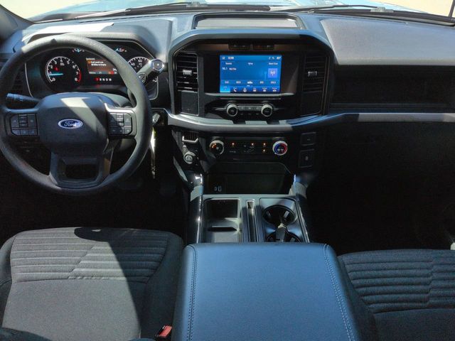 This 2023 Ford F-150 XL in Area 51 Blue features: 4D SuperCrew, 5.0L V8, 10-Speed Automatic, 4WD, 20" 6-Spoke Machined-Aluminum Wheels, 4-Wheel Disc Brakes, 4G WiFi Hotspot Telematics, 8" Color Touchscreen, ABS brakes, Air Conditioning, Auto Emergency Braking, Auto High-beam Headlights, Backup Camera, Black Platform Running Boards, Body-Color Front & Rear Bumpers, Box Side Decals, Brake assist, Class IV Trailer Hitch Receiver, Compass, Delay-off headlights, Driver/Passenger Seat Back Pocket, Electronic Locking w/3.31 Axle Ratio, Electronic Stability Control, Equipment Group 101A Standard, Extended Range 36 Gallon Fuel Tank, Exterior Parking Camera Rear, Fog Lamps w/Black Bezels, Front wheel independent suspension, Fully automatic headlights, Heated door mirrors, Hill Start Assist, Illuminated entry, Lane-Keeping System, Low tire pressure warning, Manual Driver/Passenger Lumbar, Molded-In Color Black Honeycomb Style Grille, Outside temperature display, Overhead console, Panic alarm, Parking Sensors, Post Collision Braking, Power door mirrors, Power Mirror Package, Power Package, Power windows, Pre Collision Assist w/ AEB, Pre-Collision Assist w/Automatic Emergency Braking, Pro Trailer Hitch Assist, Radio data system, Radio: AM/FM SiriusXM w/360L, Radio: AM/FM Stereo w/6 Speakers, Rear step bumper, Rear Window Defroster, Rear Window Fixed Privacy Glass w/Defroster, Rear-View Camera, Remote keyless entry, Reverse Brake Assist, Reverse Sensing, Reverse Sensing System, Security system, Speed control, Speed-sensing steering, Split folding rear seat, Steering wheel mounted audio controls, STX Appearance Package, SYNC 4, SYNC 4 w/Enhanced Voice Recognition, Telescoping steering wheel, Tilt steering wheel, Tow Package, Traction control, Trailer Package, Trip computer, Unique Sport Cloth 40/20/40 Front-Seats, Unique Sport Cloth 40/Console/40 Front-Seats, Variably intermittent wipers.