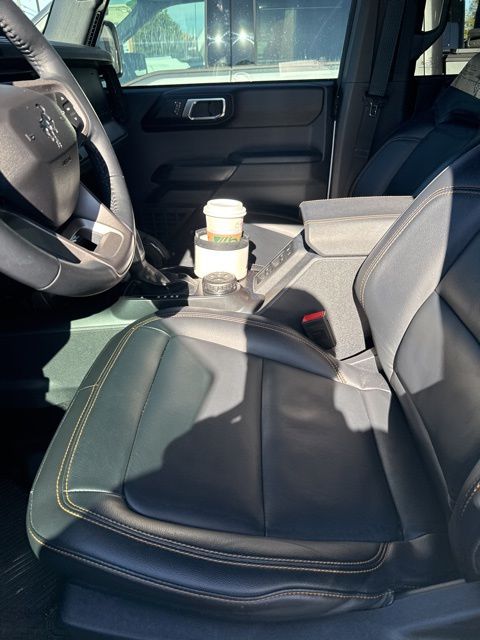 This 2024 Ford Bronco Badlands in Oxford White features: 4D Sport Utility, 2.7L EcoBoost V6, 10-Speed Automatic, 4WD, **LOCAL TRADE**, 10 Speakers w/Subwoofer, 12" LCD Productivity Touchscreen, 2-Door Intelligent Access w/Lock/Unlock, 360-Degree Camera, 360-Degree Camera, 4-Wheel Disc Brakes, ABS brakes, Adaptive Cruise Control, Adaptive Cruise Control, Additional Sound Deadening, AM/FM radio: SiriusXM with 360L, Ambient Footwell Lighting, Auto Emergency Braking, Auto High-Beam Headlamps, Auto High-beam Headlights, Auto-Dimming Interior Rear-View Mirror, Backup Camera, BLIS Blind Spot Information System, Bluetooth w/ Audio Streaming, Brake assist, Carbonized Gray Molded-In-Color Hard Top, Cold Weather Package, Compass, Delay-off headlights, Dr & Pass Illuminated Sliding Visor Vanity Mirrors, Dual Smart Charging USB Ports, Dual-Zone Electronic Automatic Temperature Control, Electronic Stability Control, Equipment Group 334A High/Lux Package, Evasive Steering Assist, Exterior Parking Camera Rear, Front Center Armrest, Front Parking Sensors, Front Row Heated Seats, Front Row Top Panels Storage Bag, Front wheel independent suspension, Fully automatic headlights, Hard Top Sound Deadening Headliner, Heated door mirrors, Heated Steering Wheel, Hill Start Assist, Illuminated entry, Information on Demand Panel, Integrated roll-over protection, Lane-Keeping System, Leather Seats, Leather Shift Knob, Low tire pressure warning, Luxury Package, Marine Grade Vinyl Bucket Seats, Outside temperature display, Overhead console, Panic alarm, Power door mirrors, Power Mirror Package, Power Outlet - Back Side of Center Floor Console, Power Package, Power steering, Power windows, Pre Collision Assist w/ AEB, Pre-Collision Assist w/Automatic Emergency Braking, Premium Audio Package, Premium Sound Package, Push Button Start, Radio: B&O Sound System by Bang & Olufsen, Rear Parking Sensors, Rear-View Camera, Rear-Window Defroster & Washer, Remote keyless entry, Remote Start, Security system, Sideview Mirrors, SiriusXM Radio w/360L, Split folding rear seat, Steering wheel mounted audio controls, SYNC 4, Telescoping steering wheel, Tilt steering wheel, Trip computer, Universal Garage Door Opener, Variably intermittent wipers, Wheels: 17" Machined Carbonized Aluminum, Wireless Charging Pad, Wireless Charging Pad.
