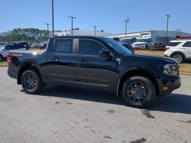 This 2024 Ford Maverick Lariat in Shadow Black features: **LOCAL TRADE**, **SERVICED HERE SINCE NEW**, Adaptive Cruise Control, Auto Emergency Braking, Auto LED Headlights, Backup Camera, Blind Spot Monitoring, BLIS w/ Cross Traffic Alert, Bluetooth w/ Audio Streaming, Evasive Steering Assist, Lane Keeping System, Lariat Package, Off Road Package, Parking Sensors, Power Mirror Package, Power Package, Pre Collision Assist w/ AEB, Premium Audio Package, Premium Sound Package, Push Button Start, Remote Start, Reverse Brake Assist, Reverse Sensing, Skid Plate Package, Sunroof/Moonroof, Wireless Charging Pad, 4D Crew Cab, EcoBoost 2.0L I4 GTDi DOHC Turbocharged VCT, 8-Speed Automatic, AWD, 4-Wheel Disc Brakes, ABS brakes, ActiveX Trimmed Front Bucket Seats, Advanced 4WD w/Twin Clutch Rear Drive Unit, AM/FM radio: SiriusXM, Auto High-beam Headlights, Automatic temperature control, Bed Extender, Black Chrome Headlamps, Black Chrome Taillamps, Brake assist, Cargo Management System Mounted Bed Cross Bars, Compass, Delay-off headlights, Electronic Stability Control, Emergency communication system: 911 Assist, Equipment Group 500A Standard, Exterior Parking Camera Rear, Fender Vent w/Tremor Orange Accents, Four wheel independent suspension, Front All Weather Floor Mats, Front Bumper w/Improved Approach Angle, Front Center Armrest, Front Tow Hooks w/Tremor Orange Painted Accent, Fully automatic headlights, Heated door mirrors, Heated steering wheel, Heavy-Duty Transmission Cooler, Illuminated entry, Low tire pressure warning, Navigation System, Off-Road Screen in Cluster, Off-Road Tuned Suspension, Outside temperature display, Overhead console, Panic alarm, Power door mirrors, Power driver seat, Power Moonroof, Power steering, Power windows, Radio data system, Radio: B&O Sound System by Bang & Olufsen, Rear Parking Sensors, Rear seat center armrest, Rear step bumper, Remote keyless entry, Security system, SiriusXM Radio, Speed control, Speed-sensing steering, Steering wheel mounted audio controls, SYNC 3 Communications & Entertainment System, Telescoping steering wheel, Tilt steering wheel, Traction control, Trail Control, Tremor Box Decals & Badges, Tremor Instrument Panel & Floor Console Accents, Tremor Off-Road Package, Unique Front & Rear Ford Logos, Unique Style Upper Grille w/Tremor Orange Accents, Wheels: 17" Machined-Face Tarnished Dark Aluminum.