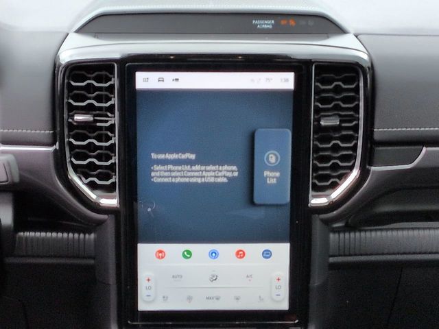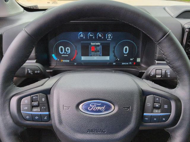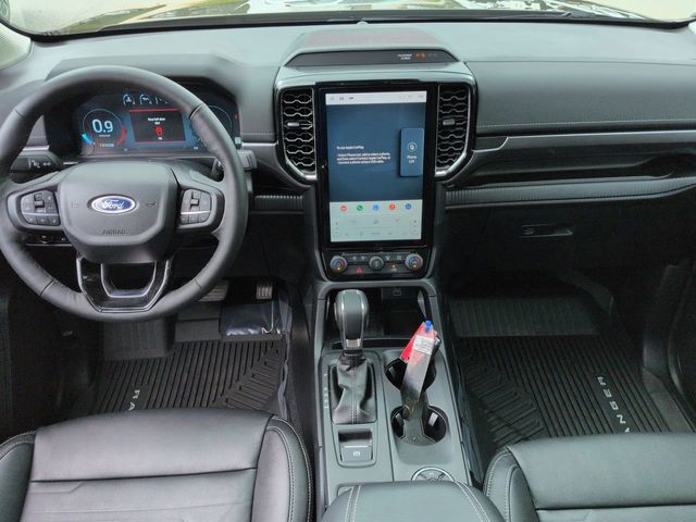 This 2025 Ford Ranger Lariat in Marsh Gray features: 4D Crew Cab, EcoBoost 2.3L I4 GTDi DOHC Turbocharged VCT, 10-Speed Automatic, 4WD, 10 Speakers, 12" LCD Productivity Touchscreen, 4-Wheel Disc Brakes, ABS brakes, Auto Emergency Braking, Auto High-beam Headlights, Auto LED Headlights, Auto-dimming Rear-View mirror, Automatic temperature control, Backup Camera, Blind Spot Monitoring, BLIS w/ Cross Traffic Alert, Bluetooth w/ Audio Streaming, Brake assist, Class IV Trailer Hitch Receiver, Cold Weather Package, Compass, Delay-off headlights, Electronic Stability Control, Electronic-Locking Rear Differential, Emergency communication system: SYNC 4 911 Assist, Equipment Group 500A Standard, Front Center Armrest, Front dual zone A/C, Front fog lights, Front wheel independent suspension, Fully automatic headlights, FX4 Off-Road Box Decal, FX4 Off-Road Package, FX4 Selectable Drive Modes, Garage door transmitter, Gray Painted Center Bar & Grille Surround, Gray Painted Front Fascia & Rear Bumper, Heated door mirrors, Heated front seats, Heated steering wheel, Hill Descent Control, Illuminated entry, Lariat Package, Leather Seats, Leather Shift Knob, Leather steering wheel, Leather-Trimmed Front Heated Bucket Seats, LED Projector Headlights, Low tire pressure warning, Memory Package, Memory seat, Navigation system: Connected Navigation, Off Road Package, Off-Road Screen in Center Stack, Off-Road Tuned Shocks, Outside temperature display, Overhead console, Panic alarm, Power door mirrors, Power Mirror Package, Power Package, Power Sliding Rear Window, Pre Collision Assist w/ AEB, Push Button Start, Radio: B&O Sound System by Bang & Olufsen, Rain sensing wipers, Rear seat center armrest, Rear step bumper, Remote keyless entry, Remote Start, Security system, SiriusXM Satellite Radio, Skid Plate Package, Speed control, Speed-sensing steering, Sport Appearance Package, Sport Box Decal, Steering wheel mounted audio controls, SYNC 4A w/Connected Navigation, Telescoping steering wheel, Tilt steering wheel, Traction control, Trail Control, Trailer Tow Package, Trip computer, Turn signal indicator mirrors, Wheels: 18" Machined Aluminum w/Dark Pockets.
