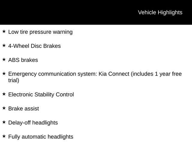 - Emergency communication system: Kia Connect (includes 1 year free trial)